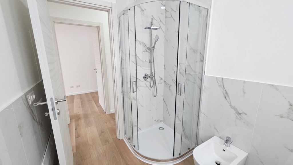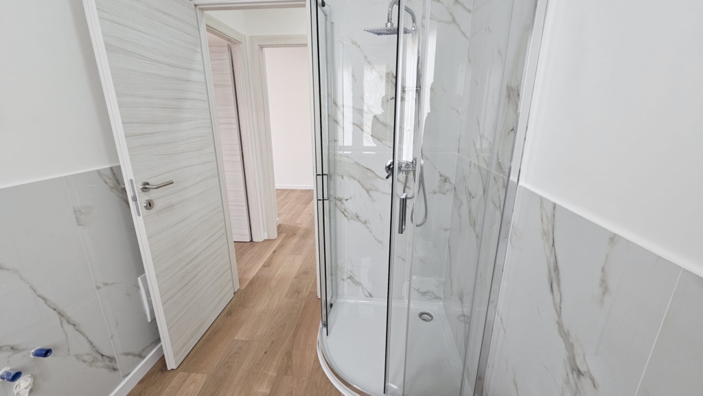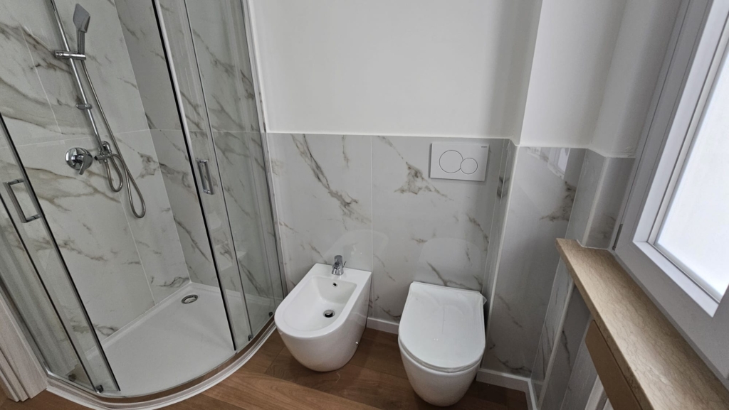 Il vecchio bagno è stato ristrutturato completamente ed è stato riammodernato grazie ad un bellissimo box doccia in cristallo e a sanitari filo muro. Sono inoltre presenti infissi nuovi in doppi vetro e PVC.